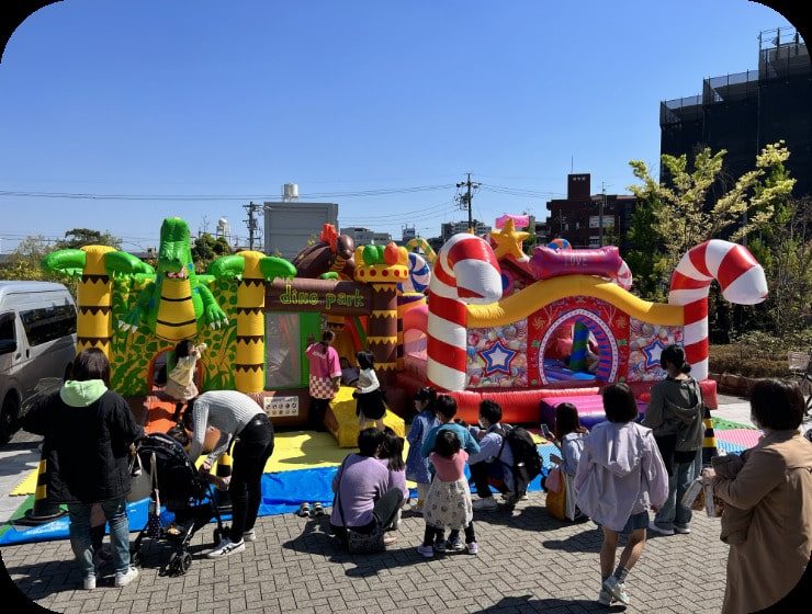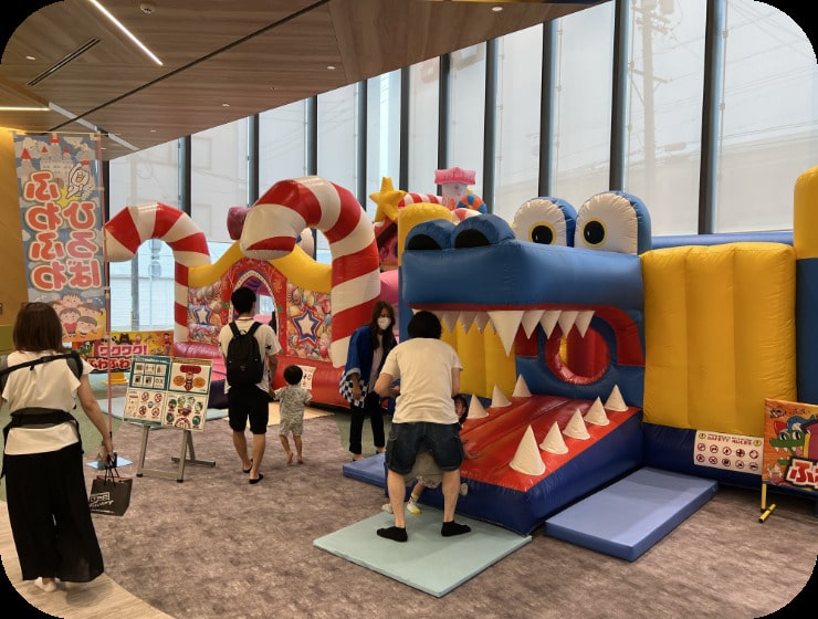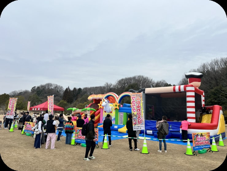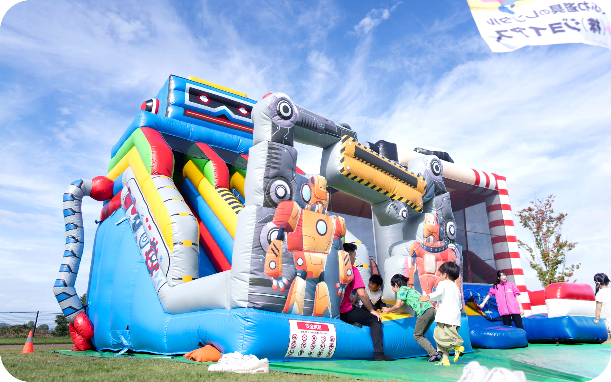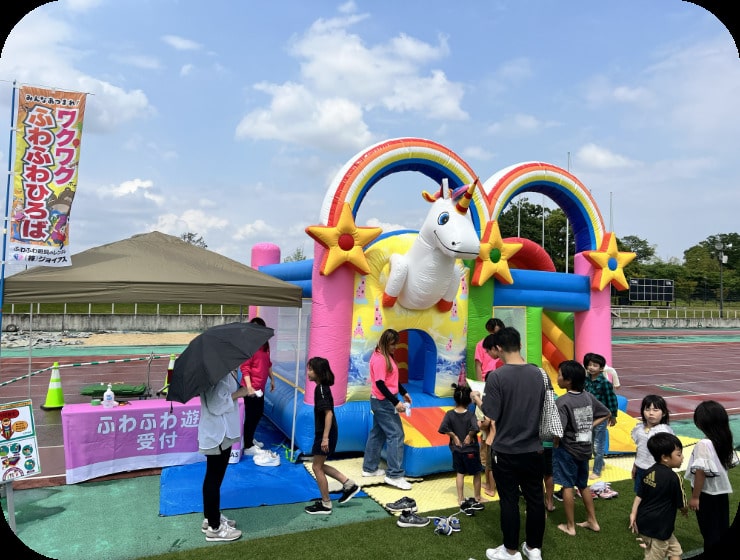 子どもに大人気のふわふわ遊具(エアー遊具)は、ご家族連れ、ファミリー層の集客にピッタリの遊具です。
