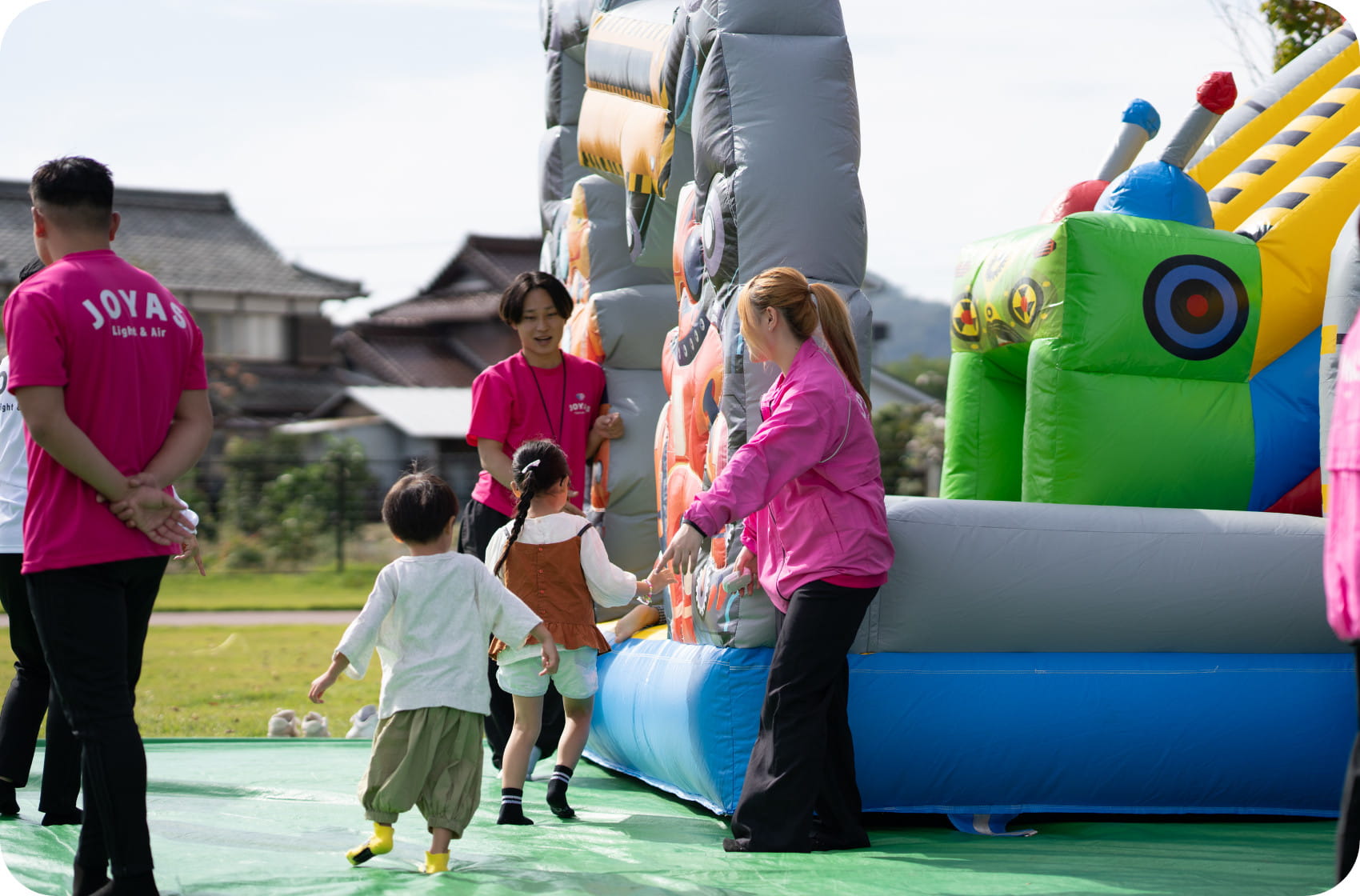 ジョイアスは日本エアー遊具安全協会に加盟しており、設営においてもイベント開催中においても、高い安全基準のもとで運営・管理いたします。