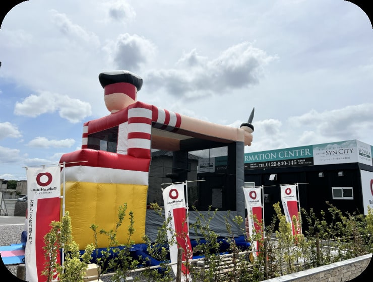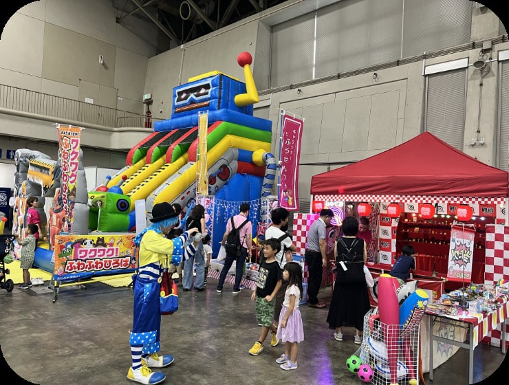 3〜6mほどの大きさになる、ふわふわ遊具(エアー遊具)は広い会場でも目を引く、イベントの主役として、シンボルとしても充分な存在感。