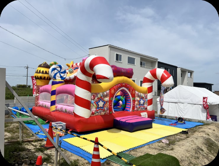 ふわふわ遊具(エアー遊具)の保有はもちろん、運搬・設営・撤去、